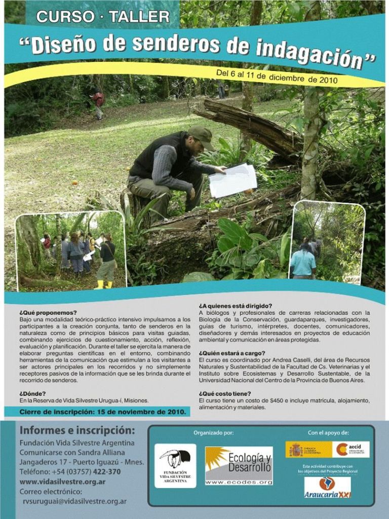 Organizadores: Este curso es organizado por la Fundación Vida Silvestre Argentina, en colaboración con la Fundación Ecología y Desarrollo (España). Esta iniciativa contribuye con los objetivos del Proyecto Regional Araucaria XXI Bosque Atlántico.