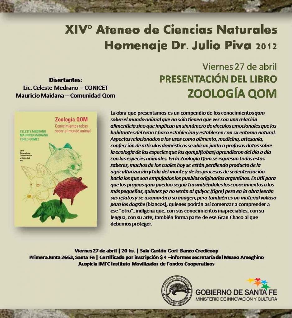 La obra que presentamos es un compendio de los conocimientos qom sobre el mundo animal que no sólo tienen que ver con una relación alimenticia sino que implican un sinnúmero de vínculos emocionales que los habitantes del Gran Chaco establecían y establecen con su entorno natural. Aspectos relacionados a los usos como alimento, medicina, artesanía, confección de artículos domésticos se ubican junto a profusos datos sobre la ecología de las especies que los qompi (tobas) aprendieron del día a día con las especies animales. En la Zoología Qom se expresan todos estos saberes, muchos de los cuales hoy se están perdiendo producto de la agriculturización y tala del monte y de los procesos de sedenterización hacia los que son empujados los pueblos originarios argentinos. Es útil para que los propios qom puedan seguir trasmitiéndoles los conocimientos a los más pequeños, quienes ya no verán al quiyoc (tigre) pero en la obra leerán sus relatos y se asomarán a su imagen, pero también es un material valioso para los dogshe (blancos), quienes podrán así comenzar a comprender a ese “otro”, indígena que, con sus conocimientos inapreciables, con su lengua, con su arte, también forma parte de ese Gran Chaco al que debemos proteger.